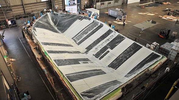 完成后的船體。對(duì)船員來說,能源管理是最大的挑戰(zhàn),他們不但要讓船體盡可能多的曬到太陽,還要考慮風(fēng)速、水流和波浪的影響。