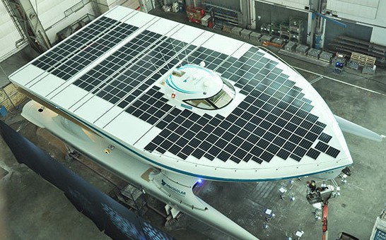 工人在頂部安裝太陽能電池板。要成功航行,就要注意在航速和尋找最多的陽光之間做好協(xié)調(diào)。