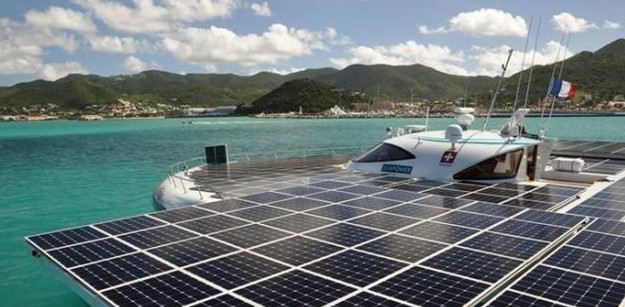 操作安靜且無污染的MS TURANOR PlanetSolar長31米、寬15米、高7.5米,重95噸,配備了800塊(536.65平方米)光伏太陽能電池板。