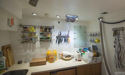 目前游艇上一共有6個(gè)房間,供9名船員居住。