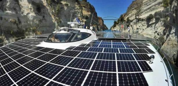 MS TURANOR PlanetSolar,2014年7月28日駛?cè)胂ED科林斯運河