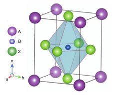 (鈣鈦礦晶體結(jié)構(gòu)示意圖) 鈣鈦礦的結(jié)構(gòu)是ABX3的形式。這種結(jié)構(gòu)在每個(gè)角共享一個(gè)BX6正八面體,其中B是金屬陽離子(Sn2+或Pb2+),X是一價(jià)陰離子(Cl-,Br-或I-)。鈣鈦礦中的陽離子A被用來抵消電荷使材料達(dá)到電中性,它可以是半徑較大鹼金屬離子等,甚至可以是一個(gè)分子。