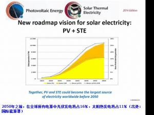 IEA提出的技術(shù)發(fā)展藍圖顯示,2050年之前,在全球所有的電源中光伏發(fā)電將占16%,聚光型太陽熱發(fā)電將占11%,合計將超過其他電力源。