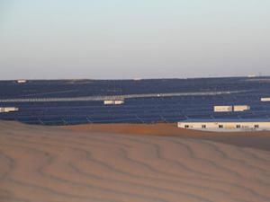 沙漠里的光伏電站 記者近日來到騰格里沙漠南緣的寧夏中衛(wèi)市沙漠光伏產(chǎn)業(yè)園采訪,了解到這里正在崛起全國最大的沙漠光伏電站。這一項目把發(fā)展光伏和沙漠治理、節(jié)水農(nóng)業(yè)相結(jié)合,開創(chuàng)了全國乃至全世界沙漠光伏并網(wǎng)電站的成功先河,它對于中衛(wèi)治理沙漠環(huán)境和發(fā)展新能源產(chǎn)業(yè)都具有十分重要的意義,具有可觀的經(jīng)濟(jì)、環(huán)境和社會效益。