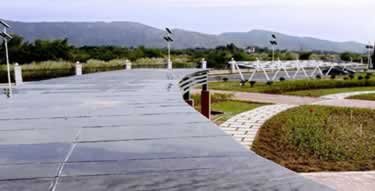 光伏車棚等交通設(shè)施是BIPV的應(yīng)用方向之一 漢能在此次APEC會(huì)議核心區(qū)建設(shè)的光伏車棚就是BIPV的主要實(shí)現(xiàn)形式之一。該項(xiàng)目采用漢能全球領(lǐng)先的太陽(yáng)能薄膜發(fā)電技術(shù),將高效薄膜發(fā)電組件集成在車棚棚頂,所發(fā)電力可供照明等用電需求,實(shí)現(xiàn)綠色電力的自發(fā)自用。車棚棚頂鋪設(shè)的太陽(yáng)能薄膜發(fā)電組件與還具有透光功能,滿足建筑內(nèi)部的采光需要。