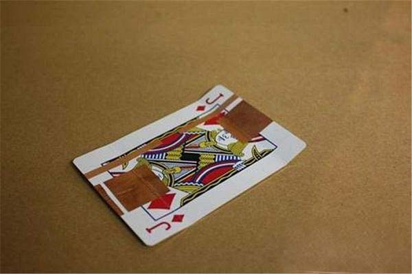 步驟 1.接下來(lái)將撲克牌頭尾往內(nèi)折并貼上銅片