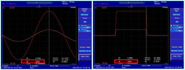 利用示波器的波形圖我們可以輕松地驗(yàn)證CI RS電源接受外部模擬量控制時(shí)的延時(shí)到底是多少。從實(shí)測(cè)的結(jié)果來看,基本上是在100微秒左右。