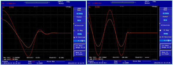 (3)60Hz正弦波從230V漸變關(guān)斷(左圖)以及直接關(guān)斷(右圖)的情況。
