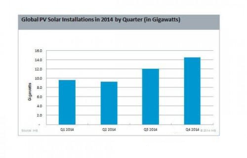 數(shù)據(jù)來源:IHS太陽能研究部門 數(shù)據(jù)顯示,2014年前三季度新增光伏并網(wǎng)容量?jī)H3.79GW,而能源局此前發(fā)布的并網(wǎng)目標(biāo)為13GW。此外,2014年前三季度新增分布式光伏并網(wǎng)容量?jī)H1.34GW,而能源局此項(xiàng)目標(biāo)為8GW。齊魯證券長(zhǎng)期跟蹤光伏行業(yè)的首席分析師曾朵紅、高級(jí)分析師沈成提到,“作為能源局來說,推廣分布式出師不利,那么新一輪的分布式政策將強(qiáng)烈醞釀。此外,能源局或?qū)⒔o出較高的2015年裝機(jī)目標(biāo)(如15GW以上)。分布式是光伏的未來已形成共識(shí),其商業(yè)模式終將走向成熟,預(yù)期出臺(tái)的‘配額制’將倒逼地方政府加速這一成熟過程。2015年年底,地面電站標(biāo)桿電價(jià)大概率下調(diào),地面電站搶裝需求毋庸置疑。預(yù)計(jì)2015年地面裝機(jī)量有望達(dá)到8~10GW,地面分布式3~5GW,屋頂分布式3~5GW,全年需求預(yù)計(jì)14~20GW!