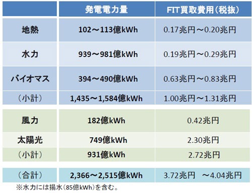 2030年的可再生能源預(yù)測導(dǎo)入量和收購費(fèi)用(出處:經(jīng)濟(jì)產(chǎn)業(yè)。