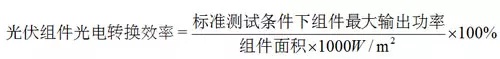 光伏組件光電轉(zhuǎn)換效率是指標準測試條件下(AM1.5、組件溫度25℃,輻照度1000W/m2)光伏組件最大輸出功率與照射在該組件上的太陽光功率的比值。
