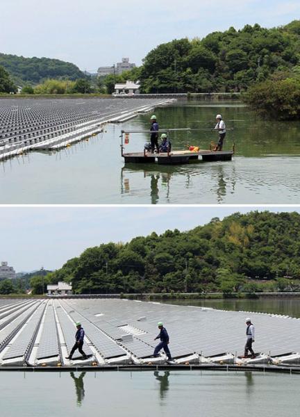 在兵庫(kù)縣加西市的逆池水面上建設(shè)的約2.3MW“兵庫(kù)加西市逆池水上百萬(wàn)光伏電站”(圖1)開(kāi)始了運(yùn)轉(zhuǎn)。這是全球最大規(guī)模的水上設(shè)置型百萬(wàn)光伏電站。