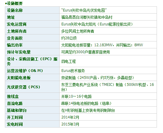 發(fā)電站名為“Eurus矢吹中島光伏發(fā)電園”。業(yè)務(wù)主體為Eurus能