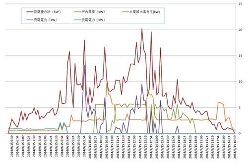 利用三種蓄能技術(shù),不依賴系統(tǒng)電力就可基本滿足全部電力需求在全世界也未見先例。雖然與連接了電網(wǎng),但除了將蓄能后的剩余電力逆潮售電,及在夜間等充電和氫不足時(shí)受電外,電力基本全部自給自足!膀(yàn)證實(shí)驗(yàn)已經(jīng)實(shí)施了大約3年,以光伏電力為主體的能源自給自足的機(jī)制已步入了正軌。首先,利用三種蓄能系統(tǒng)的特性,證實(shí)了可以按照需求順利運(yùn)行,這是最大的成果”,山梨縣企業(yè)局電氣課研究開發(fā)主任坂本正樹就三年來的成果回顧道。