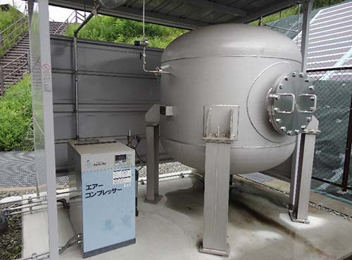 圖7:館外設(shè)置的氫燃料罐(攝影:日經(jīng)BP社)