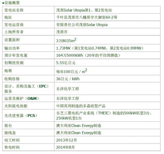 千葉縣茂原市因是日本最大的天然氣產(chǎn)地而聞名,天然氣和化學(xué)工業(yè)相關(guān)的企業(yè)云集。輸出功率為1.73MW的“茂原Solar Utopia”就是由當(dāng)?shù)?家實(shí)力企業(yè)出資,在茂原市所有的閑置土地上建設(shè)的百萬(wàn)光伏電站(圖1)。EPC(設(shè)計(jì)、采購(gòu)及施工)服務(wù)也由當(dāng)?shù)叵嚓P(guān)企業(yè)主導(dǎo)負(fù)責(zé),并且組成了項(xiàng)目融資,由千葉銀行提供資金。圖1:利用茂