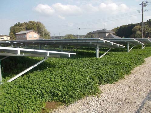 筆者2015年8月中旬前往“茂原Solar Utopia”采訪時(shí),部分三葉草已開(kāi)始發(fā)黃枯萎。門(mén)秀行組長(zhǎng)說(shuō),“三葉草雖在秋冬季節(jié)會(huì)枯萎,但在已扎根生長(zhǎng)之處一到春天會(huì)再次發(fā)芽,蓋住地面”。
