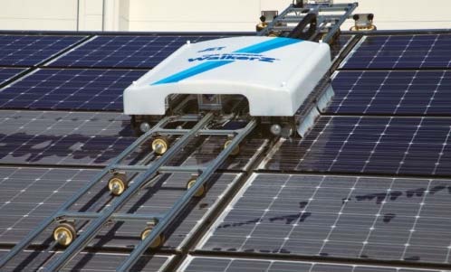 使用該公司的機(jī)器人,2人操作1臺機(jī)器人,1天可清潔約2000張、總輸出功率約為0.5MW的太陽能電池板。約使用2000升水,2塊蓄電池(1塊供電4小時(shí))。