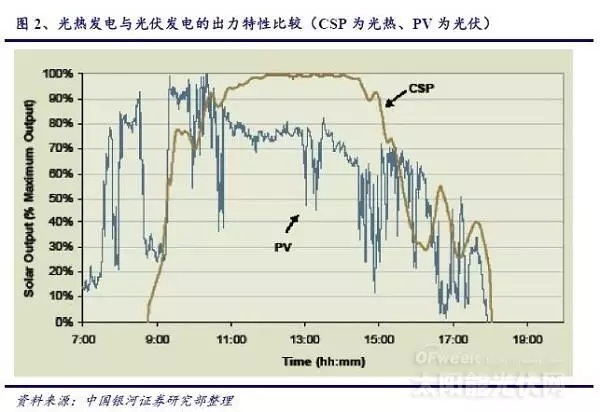 光伏發(fā)電具有間歇、不穩(wěn)定的特點,太陽輻射強度的變化、陰天下雨等突發(fā)天氣狀況都會引起電站出力的劇烈波動。而光熱發(fā)電可以通過儲熱和天然氣補燃兩種手段實現(xiàn)更為平滑的出力特性: