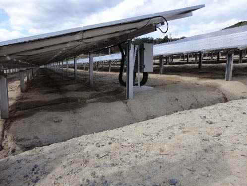 “一關(guān)市金澤光伏電站”是租賃森林組合所有的土地建設(shè)的。土地平整方面的特點(diǎn)是,對(duì)坡度最大的25度區(qū)域,為了確保樁基的支撐強(qiáng)度,而改良了地基。最初與負(fù)責(zé)EPC服務(wù)的日立簽訂的協(xié)議中約定,為了使用樁基,表示地耐力的“N值”要確保在4以上。