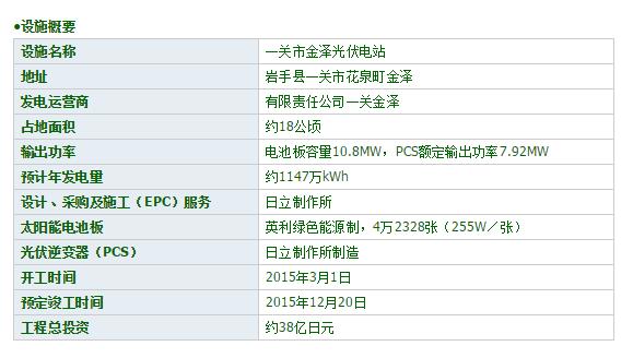 巖手縣一關(guān)市地處該縣最南端,幾乎就在東北的正中央。擁有嚴(yán)美溪和猊鼻溪等名勝,在世界遺產(chǎn)平泉大門(mén)口。10月14日,日本亞洲投資與Renewable Japan(東京都港區(qū))就在以該市為中心的東北地區(qū)建設(shè)百萬(wàn)光伏電站舉行了視察說(shuō)明會(huì)。以今后籌集開(kāi)發(fā)資金的候選金融機(jī)構(gòu)等為主,共有34家公司(約80人)參加! ∫暡靾F(tuán)前往的兩