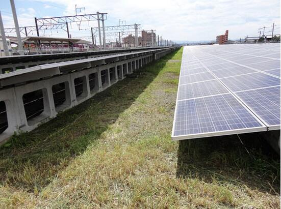 宮崎縣都城站是九州旅客鐵道公司(JR九州)日豐干線上的車站,曾是新大阪站發(fā)車的特快臥鋪列車“彗星”經(jīng)停站,F(xiàn)在也是都城市的代表性車站,特快列車“霧島”及因豪華內(nèi)飾獲得追捧的郵輪式列車“七星號”均在該站停車。 列車到站下車走到站臺上,就看到鐵軌兩旁鋪設(shè)的大量太陽能電池板。電池板周圍的圍欄上掛著“