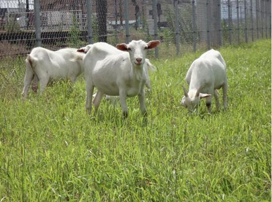 2014年3月首先租了5頭吐噶喇山羊,放養(yǎng)到了百萬光伏電站內(nèi)。吐噶喇山羊的體重為20~30kg,是體型相對較小的家畜山羊,雌雄均有羊角。原產(chǎn)地為鹿兒島縣的吐噶喇列島,特點是繁殖能力強。盡管確認了有除草效果,但也見到過山羊跳到太陽能電池板上的樣子。