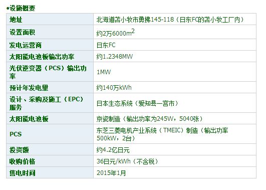 北海道苫小牧港有一座化肥廠商日東FC的工廠。該公司在廠區(qū)內(nèi)建設(shè)了輸出功率約為1.234MW的光伏電站。