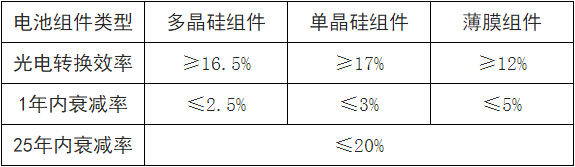 新建光伏電站使用的電池組件,要嚴格按照《國家能源局工業(yè)和信息化部國家認監(jiān)委關(guān)于促進先進光伏技術(shù)產(chǎn)品應(yīng)用和產(chǎn)業(yè)升級的意見》(國能新能〔2015〕194號)“領(lǐng)跑者”計劃標準選取。多晶硅電池組件、單晶硅電池組件、薄膜電池組件的光電轉(zhuǎn)換效率、衰減率等指標必須符合規(guī)定。