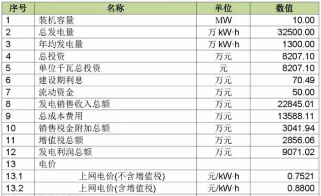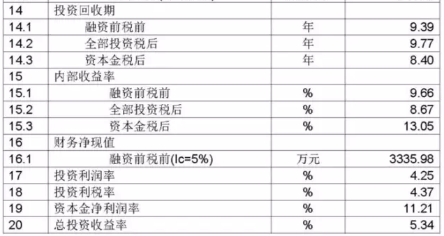 表2:光伏電站項(xiàng)目財(cái)務(wù)指標(biāo)表