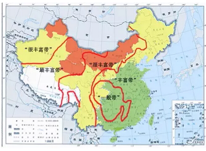 如果我們將上述兩張電價(jià)區(qū)域分布圖與資源區(qū)域分布圖對比來看,可以明顯發(fā)現(xiàn)光伏上網(wǎng)電價(jià)區(qū)分布情況與我國太陽能資源輻射情況并不完全一致。