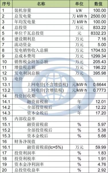 表4:100kW分布式光伏項(xiàng)目財(cái)務(wù)指標(biāo)表