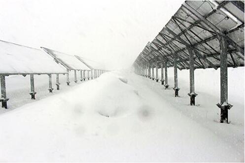 由于設(shè)計時考慮了積雪情況,截至目前在多雪期尚未出現(xiàn)光伏發(fā)電設(shè)備被雪埋住的情況(圖7)。