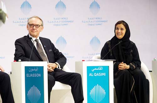 圖3:UAE國際合作開發(fā)大臣H.E.Sheikha Lubna bint Khalid Al Qasimi(右側(cè)為Al Qasimi,左側(cè)為聯(lián)合國副秘書長埃利亞松。照片:世界政府峰會) 在同一場專題討論會上發(fā)言的聯(lián)合國副秘書長揚(yáng)·埃利亞松也積極評價了迪拜的舉措:“此次的迪拜會議對2016年夏季將在紐約舉行的SDG高級別磋商討論的各國來說應(yīng)該是一種推動力”。