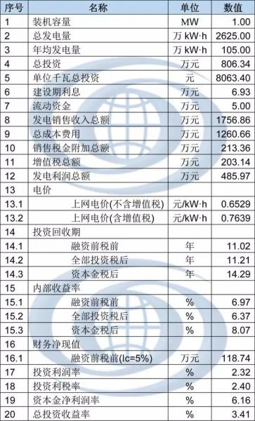 分布式光伏項(xiàng)目可選擇三種模式(國(guó)家補(bǔ)貼為20年):如果選擇“全額上網(wǎng)”方式,對(duì)應(yīng)的光伏標(biāo)桿電價(jià)為0.95元/kWh;如果選擇“自發(fā)自用,余電上網(wǎng)”,國(guó)家給予0.42元/kWh的電價(jià)補(bǔ)貼,上網(wǎng)部分按照當(dāng)?shù)厝济簶?biāo)桿電價(jià)收購(gòu);全部“自發(fā)自用”,則電價(jià)為售電價(jià)格、國(guó)家電價(jià)補(bǔ)貼價(jià)格與省級(jí)補(bǔ)貼之和。根據(jù)山東省電網(wǎng)銷售電價(jià)表,項(xiàng)目電價(jià)采用一般工商業(yè)電價(jià):0.7639元/kWh,項(xiàng)目裝機(jī)容量為1MW,單位造價(jià)為8000元,滿發(fā)小時(shí)數(shù)1050小時(shí)。依據(jù)以上條件測(cè)算,項(xiàng)目融資前稅前收益率在6.97%之間,不滿足投資收益具體見下表。當(dāng)單位造價(jià)降低至7400元,或滿發(fā)小時(shí)數(shù)提高至1130小時(shí)以上時(shí),項(xiàng)目融資前稅前收益率超過8%,滿足投資要求。