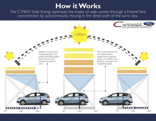 BMW Lovos概念車 你可能也已經(jīng)想到,太陽(yáng)光對(duì)太陽(yáng)能板的照射角度也有極大的要求,直射狀況下效果最佳。但是要在寶貴的日照時(shí)長(zhǎng)里盡可能追逐90度的光線角度,理科菌比仰望天空的文科菌還要淡淡地憂傷。但是總有玩起來特別較勁的歪果仁,帶來的這輛福特車名叫Ford C Max Solar Energi Concept。制造者是合作伙伴Solar Power。