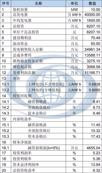 蒙西地區(qū)光伏電站財(cái)務(wù)表