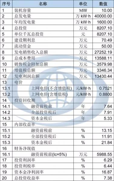 蒙東地區(qū)光伏電站財(cái)務(wù)表