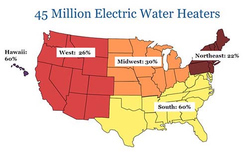 圖4:美國各地區(qū)的電熱水器導(dǎo)入率。夏威夷州的導(dǎo)入率為美國最高(出處:Regulatory Assistance Project)