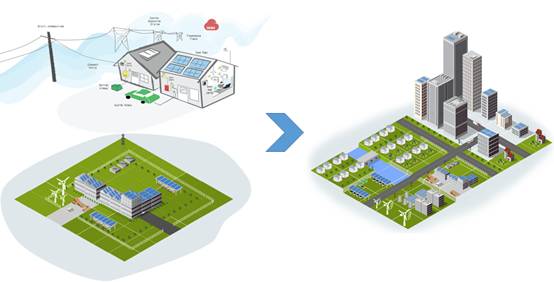 此外,根據(jù)大數(shù)據(jù)分析進行能量生產(chǎn)和使用的預(yù)測,合理安排生產(chǎn)和消耗。最后,在工商業(yè)樓宇之間進行能源生產(chǎn)和消費的交易,實現(xiàn)收益最大化,并從而形成城市化的能源互聯(lián)網(wǎng)。