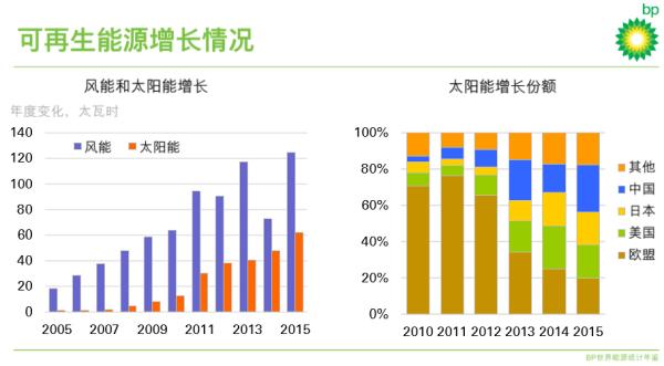 2015年,可再生能源(包括風(fēng)能、太陽能和生物質(zhì)燃料)的發(fā)電量持續(xù)增加,達(dá)到全球能源消耗的2.8%,而10年前僅為0.8%。