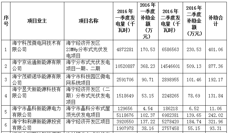 浙江海寧擬下發(fā)2014年度分布式光伏發(fā)電項目補助清算以及2016年1-2季度電價補助