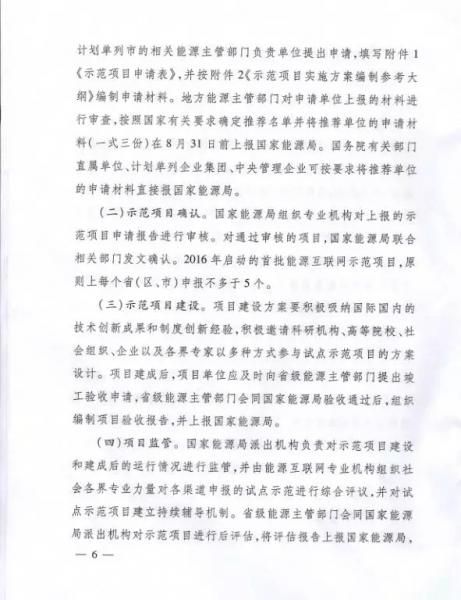國(guó)家能源局關(guān)于組織實(shí)施“互聯(lián)網(wǎng)+”智慧能源示范項(xiàng)目的通知
