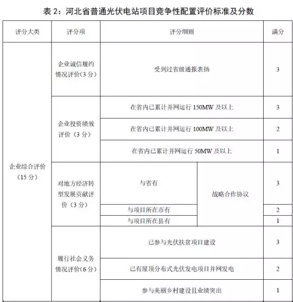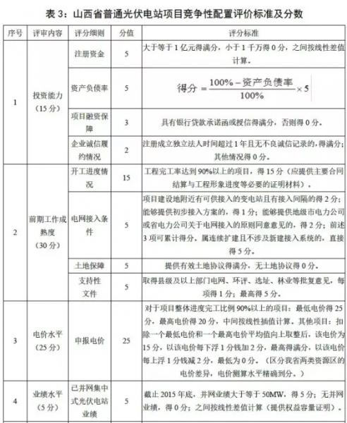 河北、山西兩地公布了《普通光伏電站項目競爭性配置試行辦法》,考核評價標準如下: