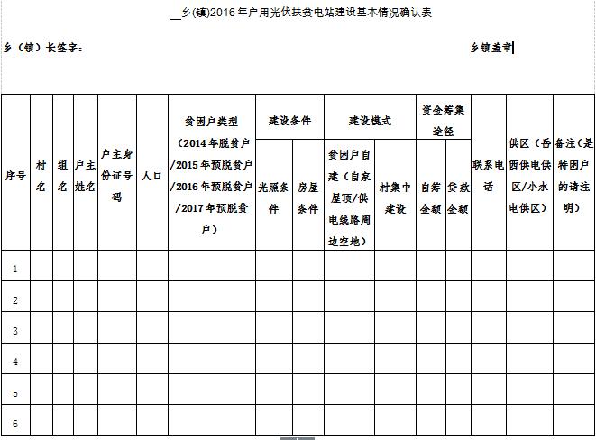 附件:4、鄉(xiāng)(鎮(zhèn))2016年戶用光伏扶貧電站建設(shè)基本情況確認(rèn)表