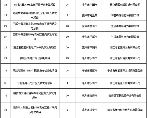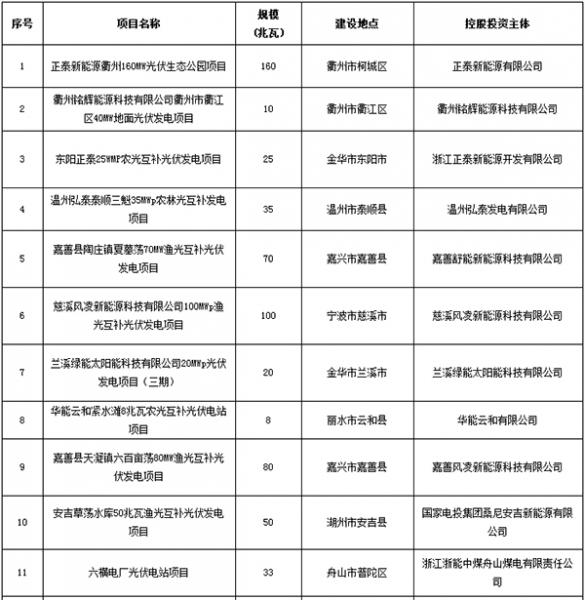浙江省2016年度普通地面光伏電站建設(shè)規(guī)模內(nèi)項目名單