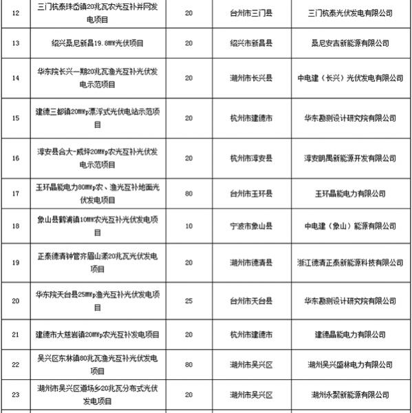 浙江省2016年度普通地面光伏電站建設(shè)規(guī)模競爭性分配結(jié)果公示