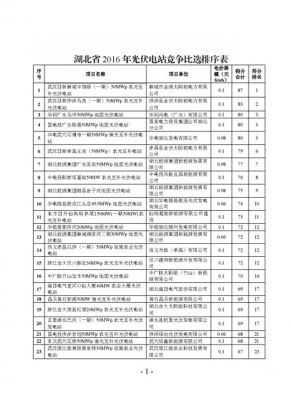 附件: 湖北省2016年光伏電站競爭比選排序表