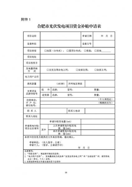 附件:1、合肥市光伏發(fā)電項(xiàng)目度電補(bǔ)貼申請(qǐng)表