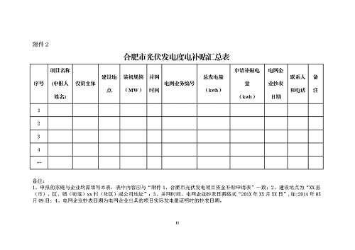 2、合肥市光伏發(fā)電度電補(bǔ)貼匯總表